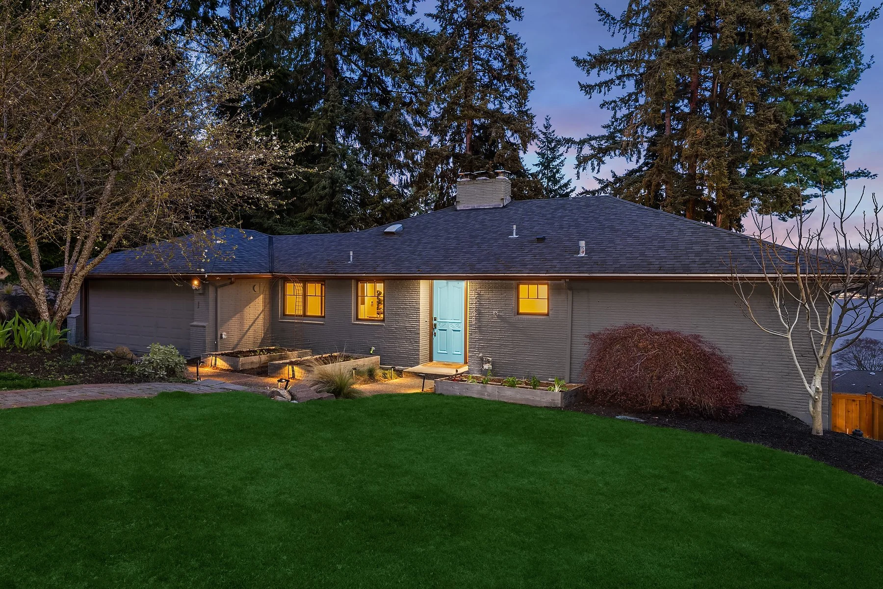 Awaken the day with views of a sunrise over Lake Washington from bed; later, unwind in the hot tub, enjoying views of Mt. Rainier and the Bellevue skyline, as seaplanes make their graceful descent. This Cedar Park home offers stunning lake views from nearly every room.